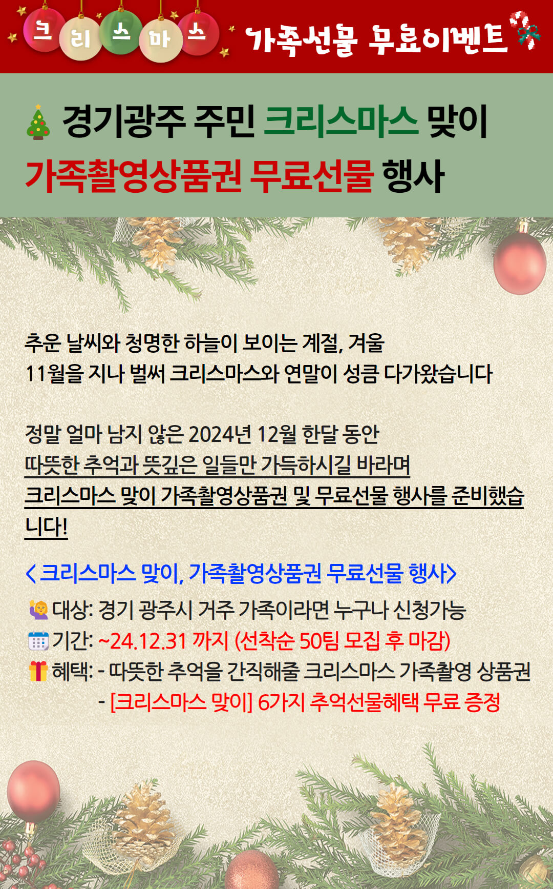 ※ 45세이상 인원이 있어야 무료혜택이 적용됩니다 (없을시 부모님 또는 조부모님 동반가능)